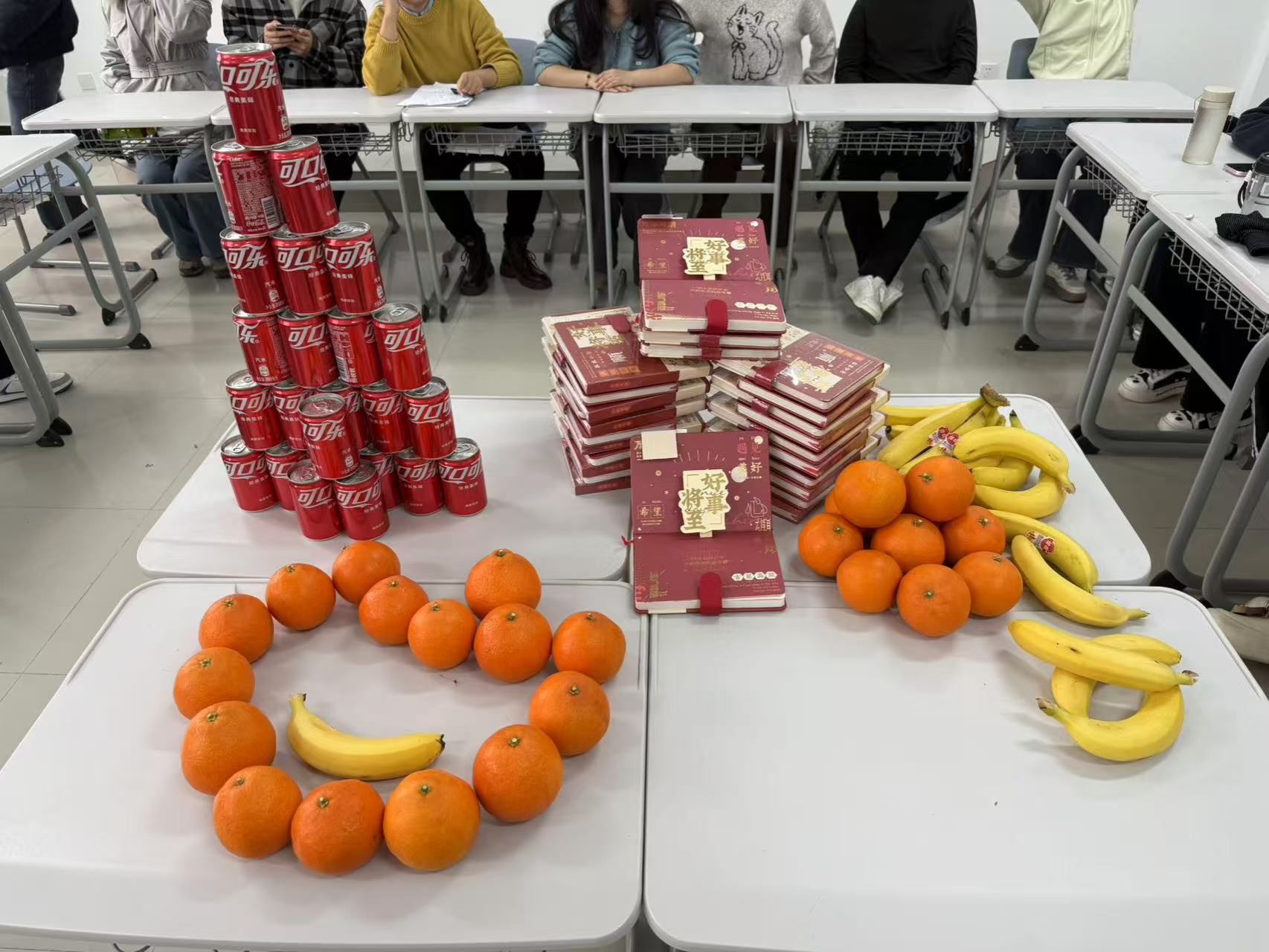 为活跃轻松气氛,教研室特意准备了橙子,寓意“橙风破浪”、“前橙似锦”、“一举橙名”;可乐寓意为“百事可乐”、“事事顺利”,同时,还贴心的为每位同学送上定制纪念品,让交流会充满暖意。活动尾声,老师们再次叮嘱同学们珍惜剩余大学时光,明确目标、脚踏实地,并送上真挚祝福:“愿大家毕业快乐,前程似锦,在金融领域绽放光彩!”