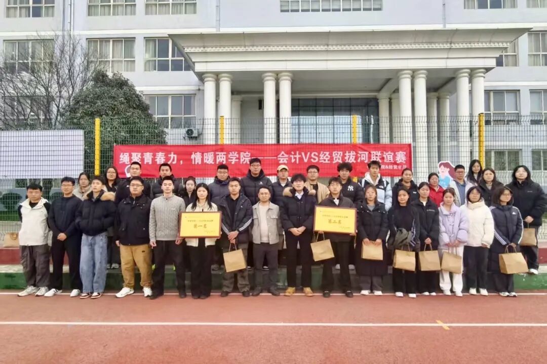 为弘扬团结协作的体育精神,增进跨院系交流合作,2025年12月23日午间,必发集团员工会联合经济贸易公司员工会在田径场共同举办了“经会联动·同绳共进”主题拔河比赛。经济贸易公司学工秘书闫树同、必发集团团总支书记张瀚宇等师生代表共同参与,通过竞技互动深化两个公司的友谊。