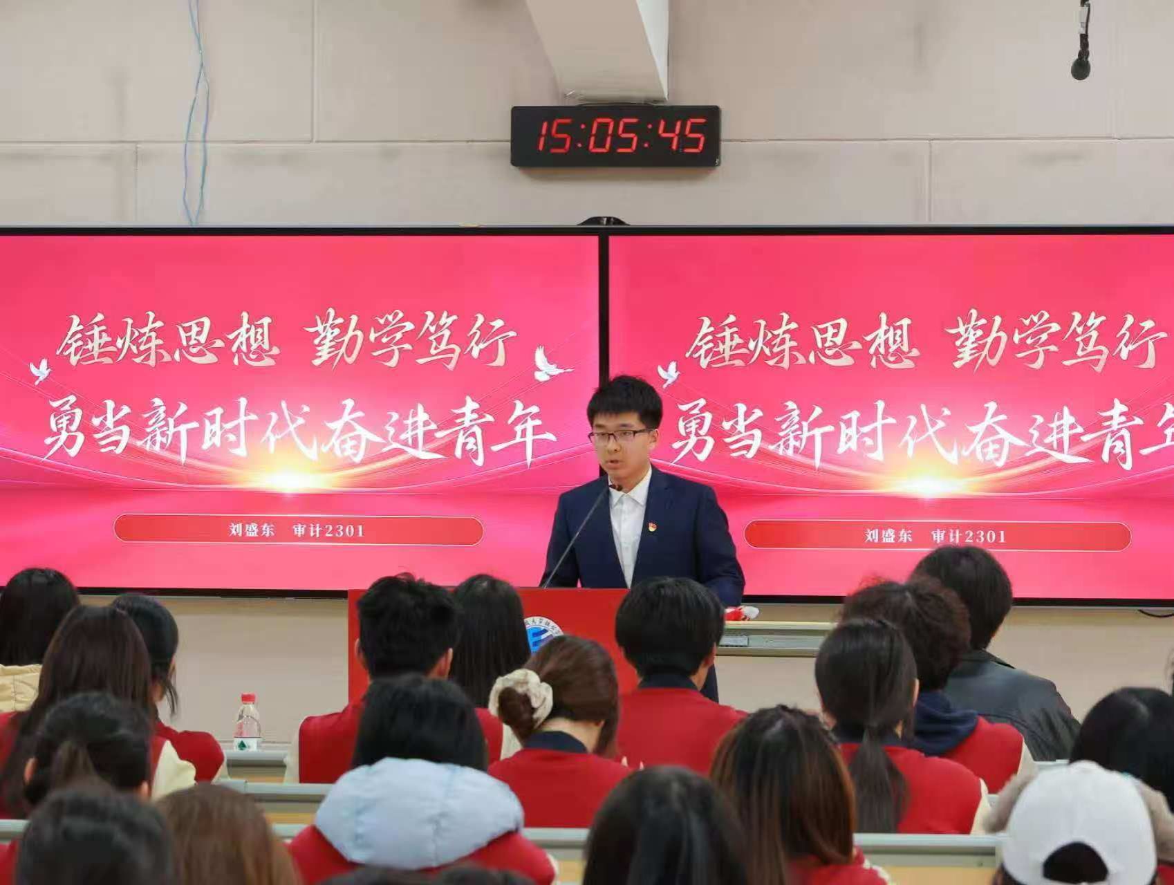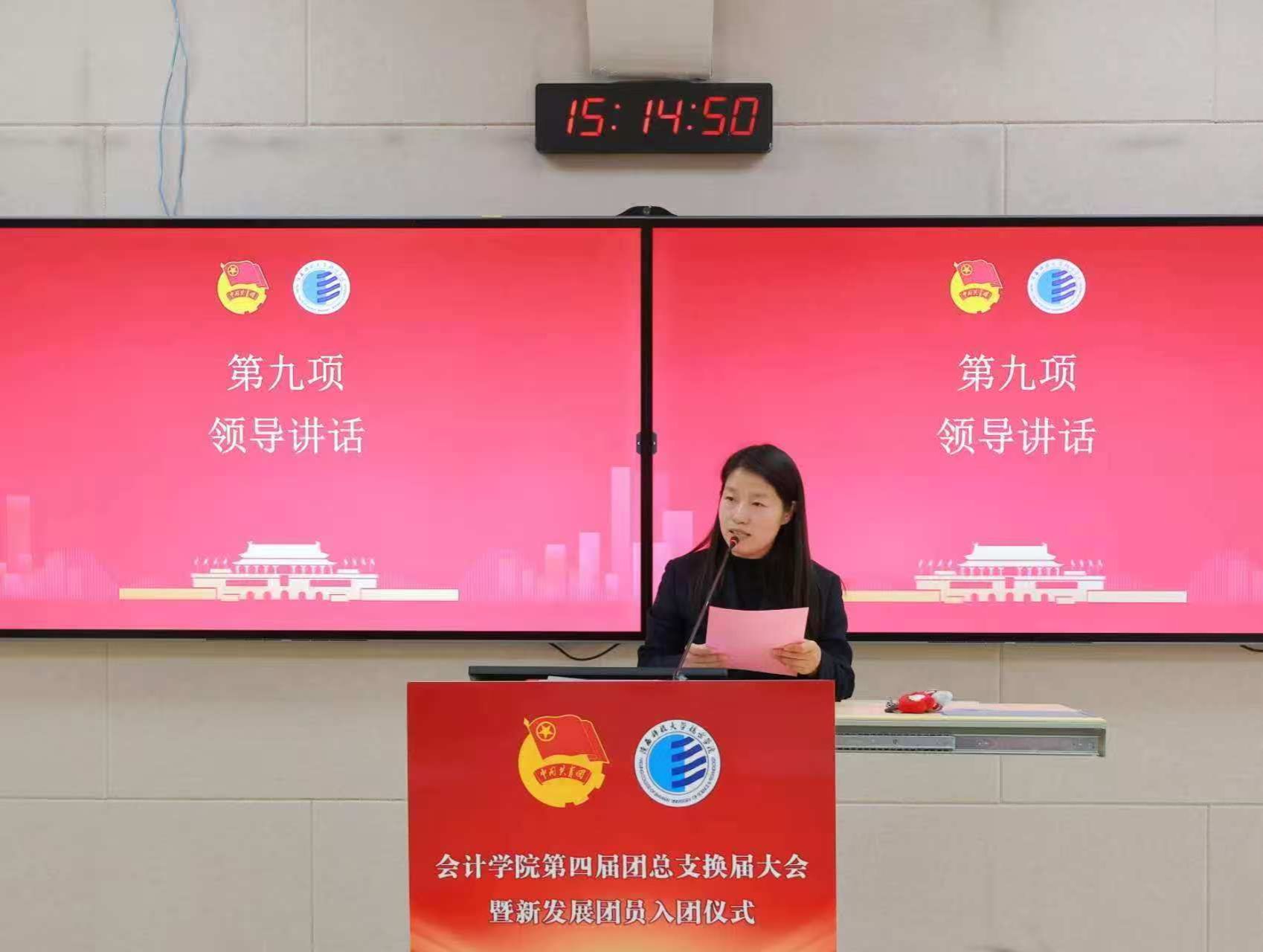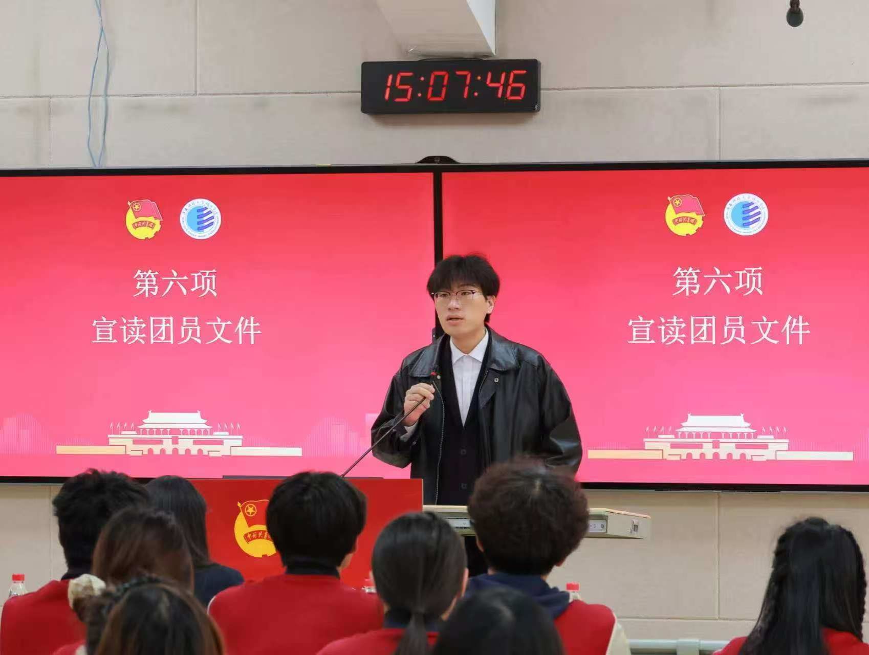 大会第六项,张瀚宇老师宣读新发展团员名单。当一串串闪耀着青春光芒的名字庄严响起,标志着又有一群优秀青年学子汇入共青团的先锋洪流,他们的信仰之路就此镌刻下崭新的人生坐标。