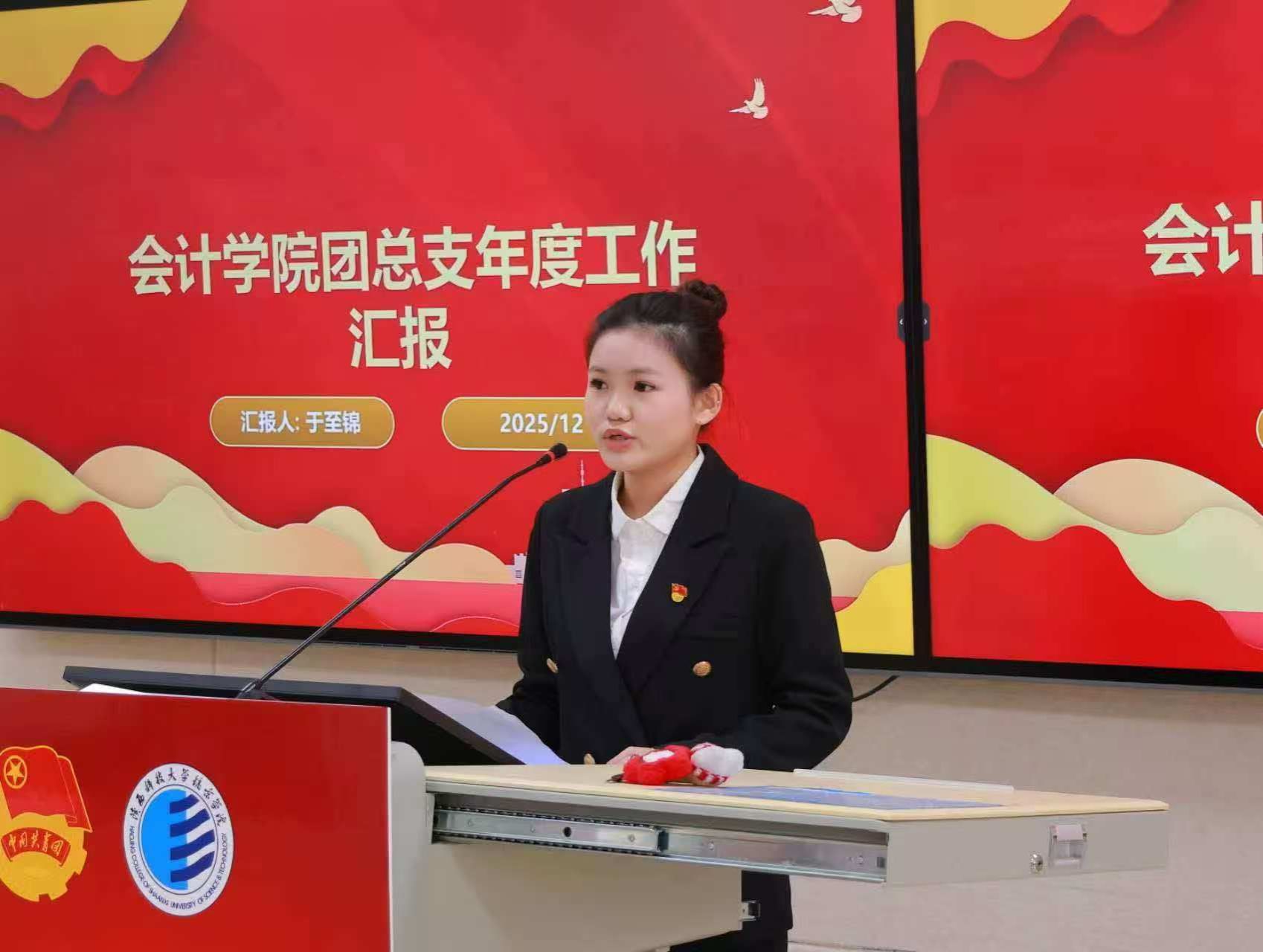 大会第二项,第三届团总支员工副书记于至锦作年度工作汇报。报告从思想引领、组织建设、校园文化、实践服务等多维度,系统回顾了过去一年团总支的奋斗历程与扎实成效。每一项成绩都彰显着团学骨干“以青春之我,奉献时代之需”的担当,也为新一届团总支接续奋斗奠定了坚实基础。