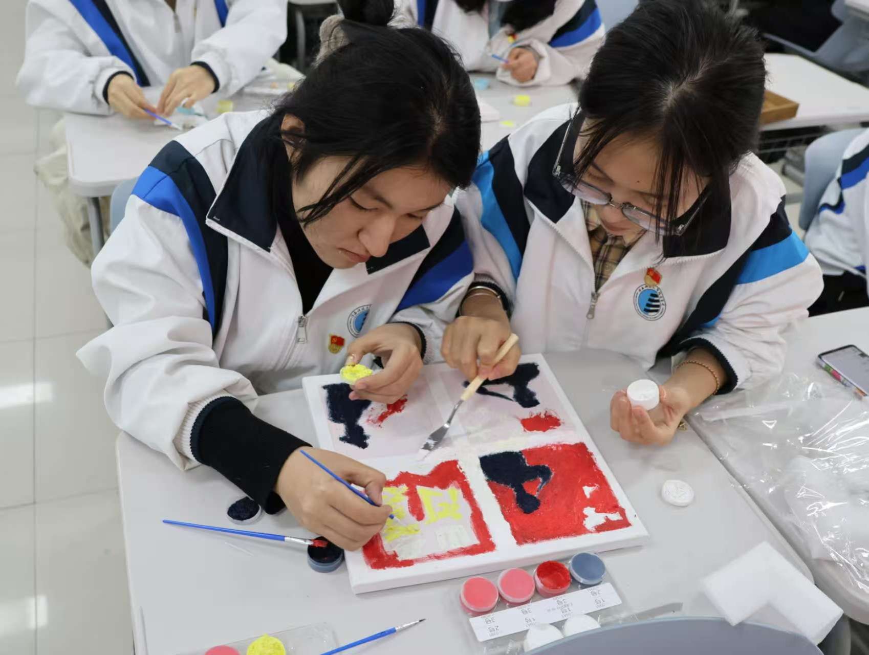红色肌理画创作环节,党员们以笔为媒、以画寄情,围绕红色符号、初心使命等主题展开创作。大家充分发挥创意,用丰富的色彩、独特的肌理质感,将对党的忠诚、对红色精神的理解融入画作之中。创作完成后,党员们纷纷分享作品理念,交流学习感悟,使红色基因在艺术表达中得到进一步传承。