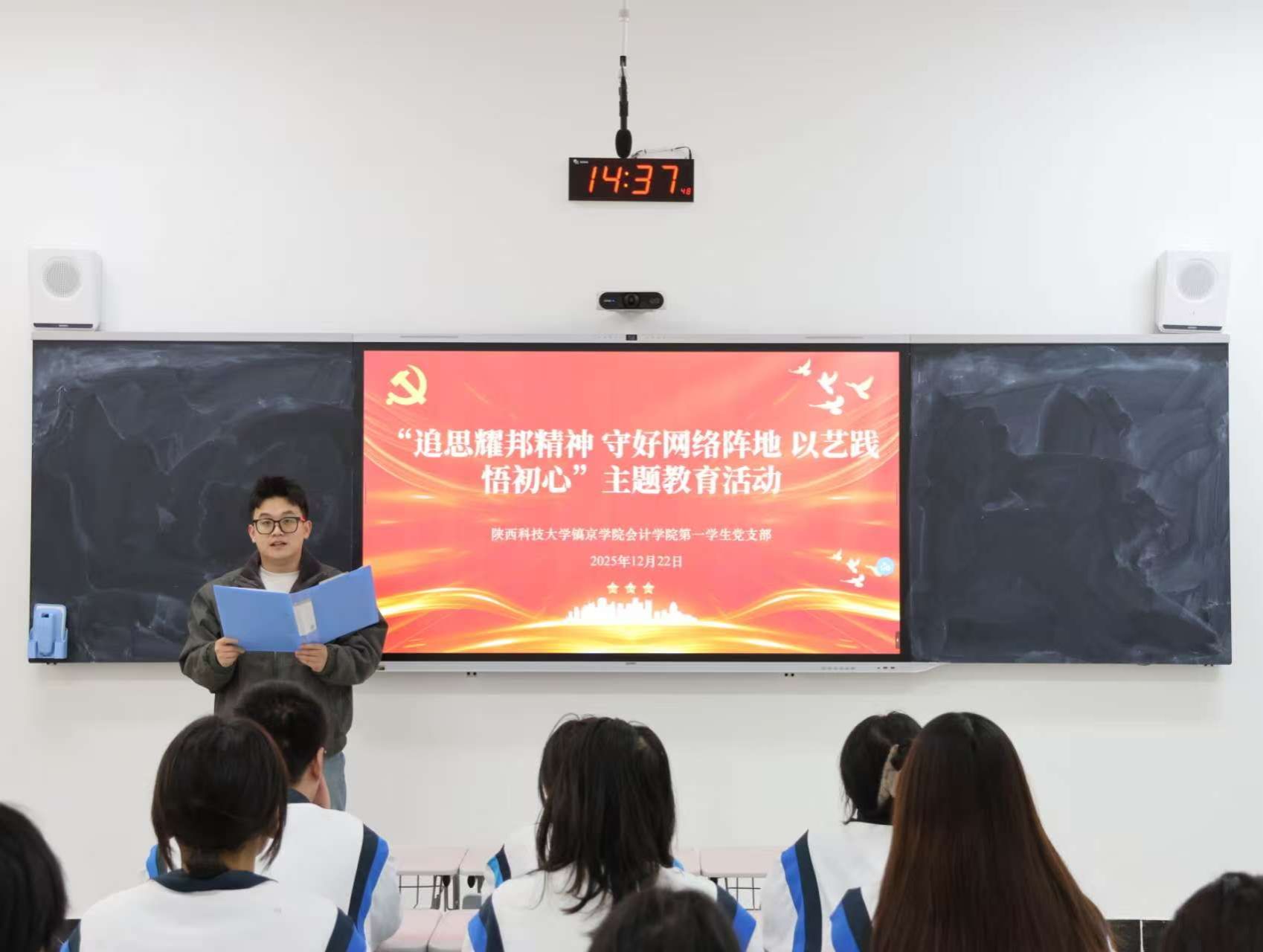 活动以理论学习、文件解读、实践创作等多样化形式展开,让党员在多维度体验中锤炼党性。理论学习环节,卫通达同志带领全体党员集中学习了习近平总书记在纪念胡耀邦同志诞辰110周年座谈会上的重要讲话,深刻感悟胡耀邦同志坚守信仰、献身理想的高尚品格,心在人民、利归天下的为民情怀。红色影片中,生动再现了革命先辈的奋斗历程,进一步激发了青年党员的爱国热情和使命担当。