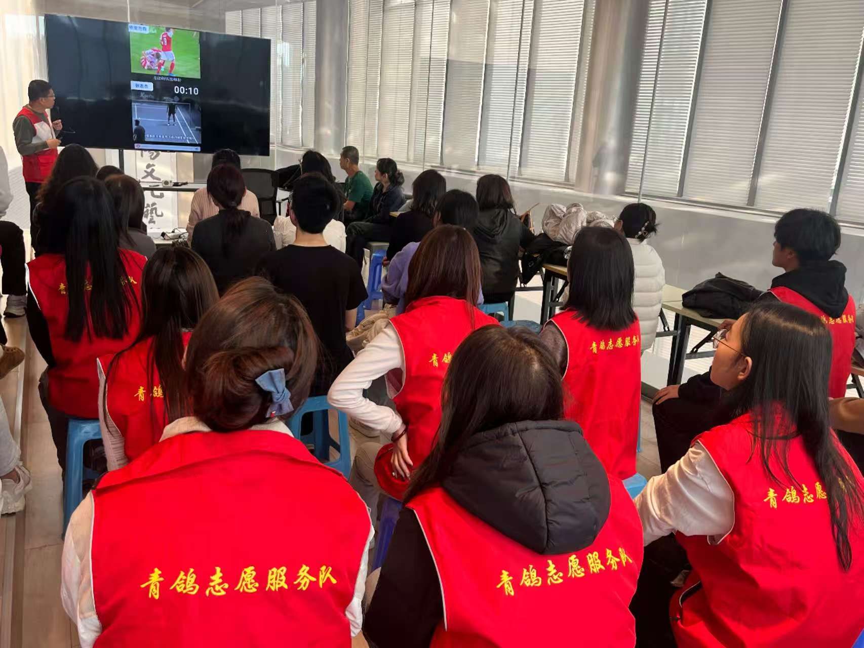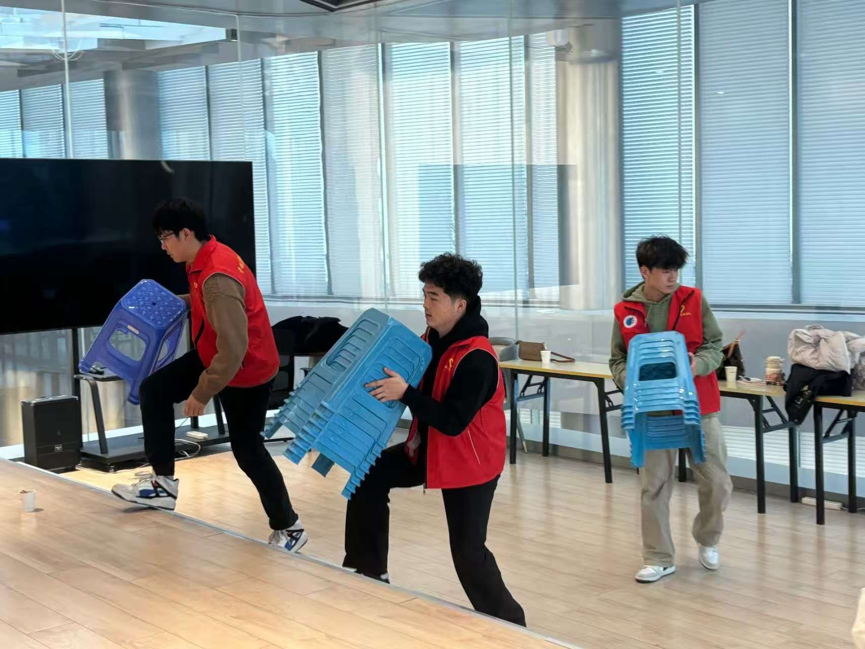 培训结束后,青鸽志愿服务队队员主动协助整理培训会场,有序收纳凳子、清理现场杂物,用实际行动践行志愿服务精神。