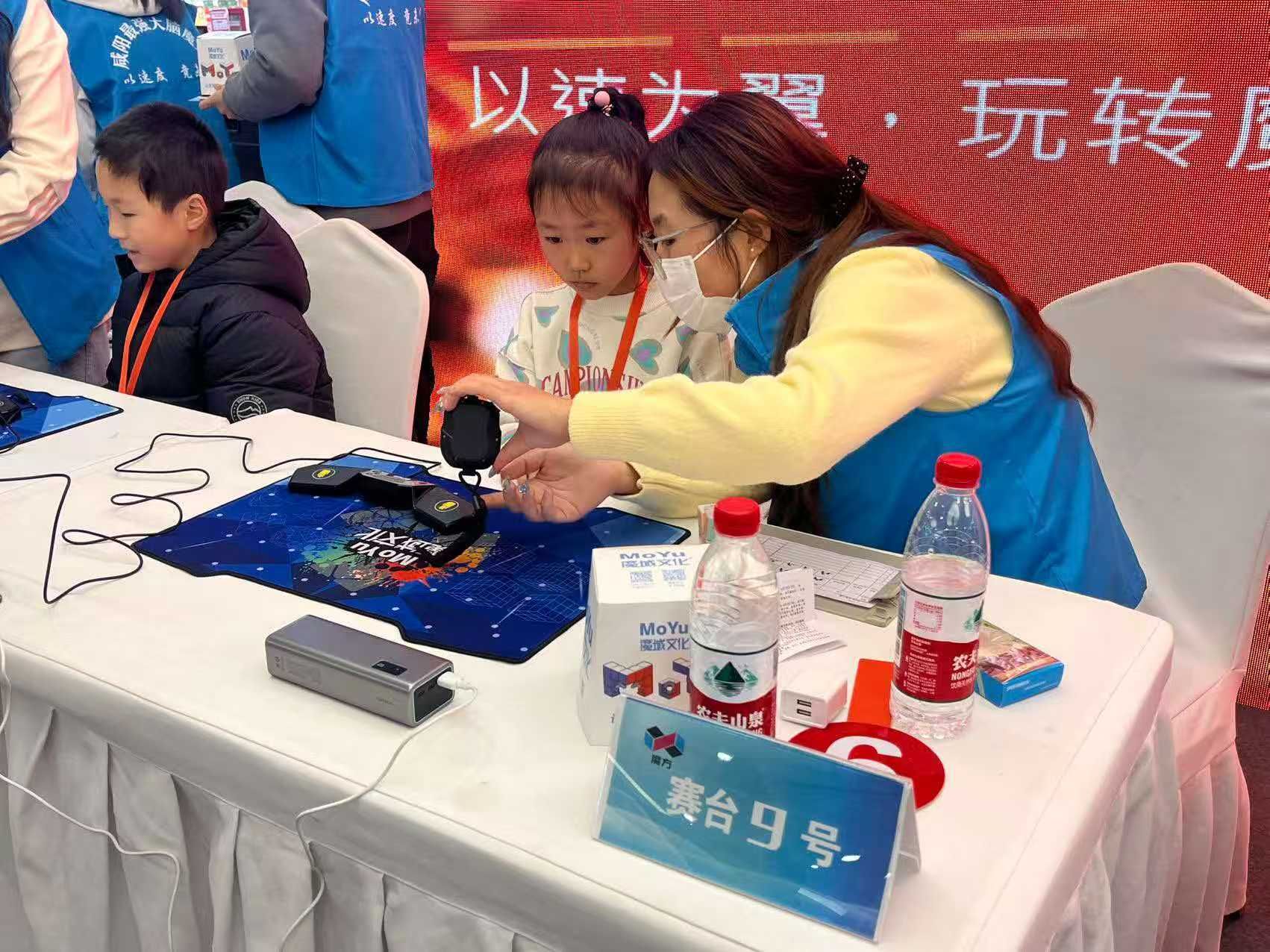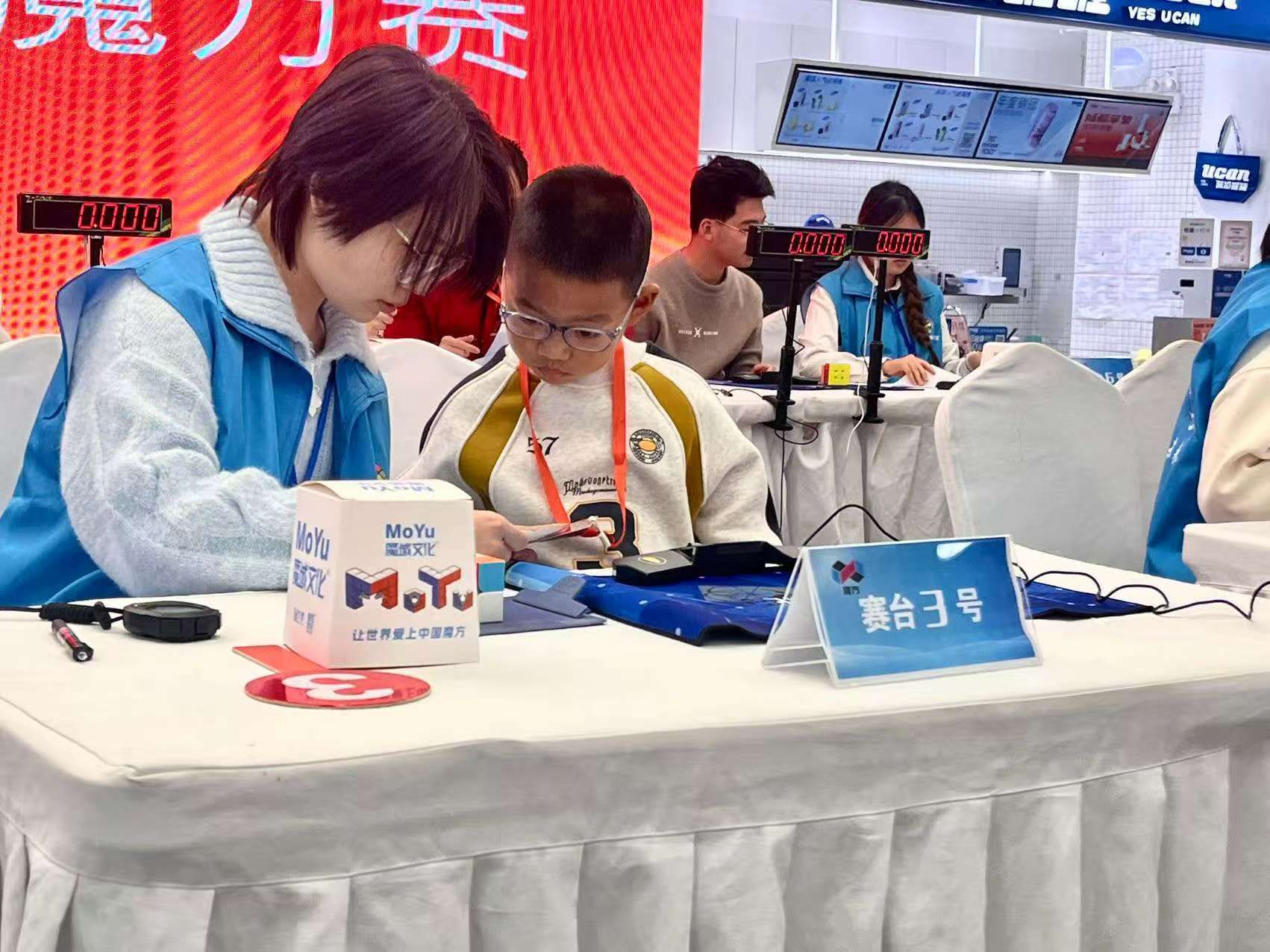 随着主持人热情开场,新年魔方公开赛正式拉开帷幕。裁判代表登台宣誓,承诺将以公平公正的原则执裁整场赛事。随后,二阶、三阶、枫叶、齿轮、金字塔等多个项目的决赛依次进行,选手们指尖翻飞,在方寸魔方上展开速度与技巧的较量。赛场边,志愿者们各司其职,配合裁判完成计时监督、成绩记录、道具传递等工作,紧盯赛事进程,确保每一轮比拼都规范有序。