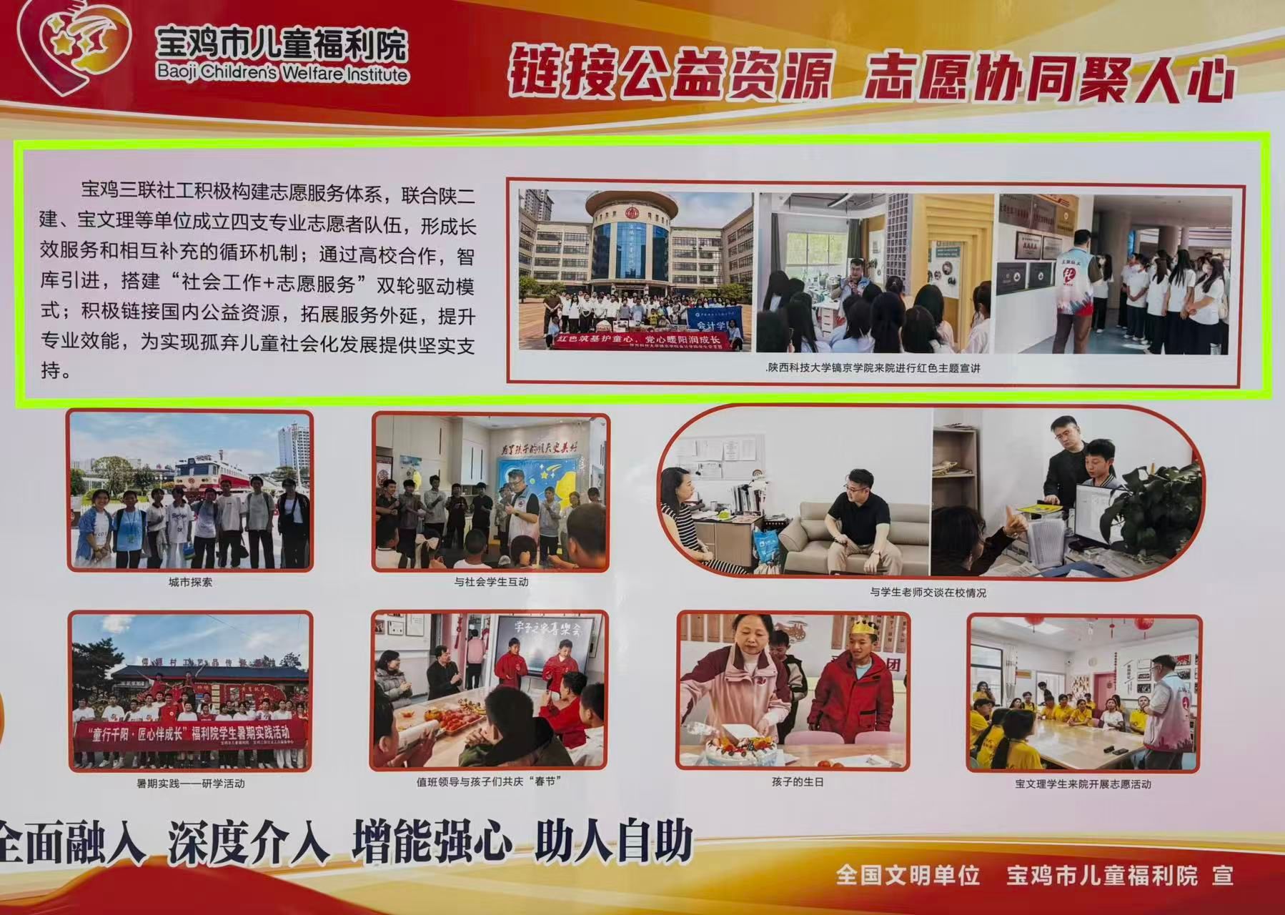 自校地战略合作启幕,公司党总支以党的二十大精神为指引,创新“党建+公益”融合机制,依托长效服务体系,成为“我为群众办实事”的典范。去年5月,员工党支部深入宝鸡市儿童福利院,通过实地探访及调研,推动“立德树人”与“服务民生”深度融合,以高校智慧开创公益新路径。