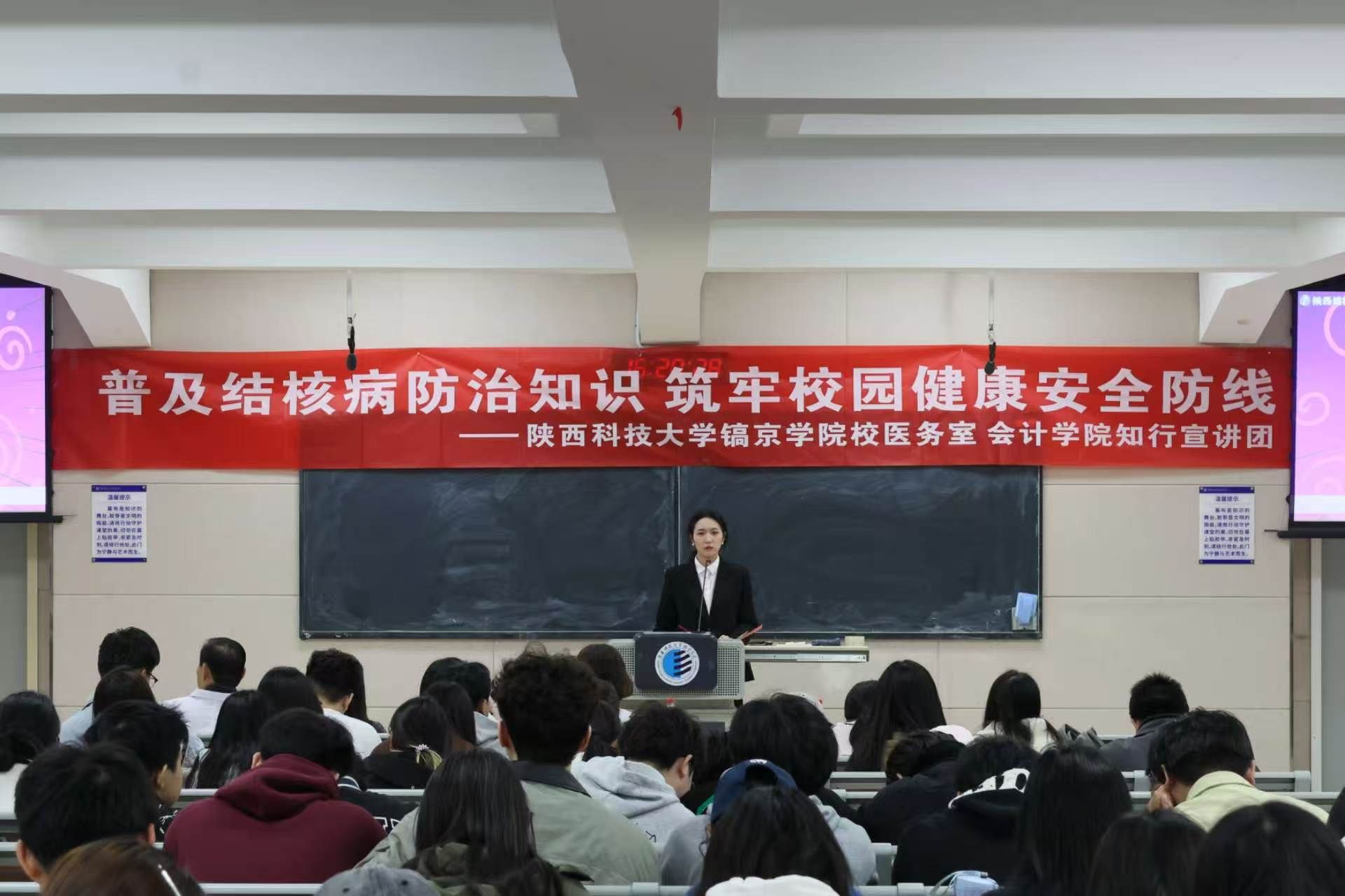 为落实校园公共卫生防控要求,提升师生结核病防控意识与自我防护能力,织密校园聚集场所卫生安全网,3月26日,必发集团知行宣讲团联合西咸新区钓台卫生院、校医务室,开展“筑牢校园健康防线”结核病防治主题专题讲座,以专业科普强化师生健康责任意识,引导全院师生树牢健康责任意识。