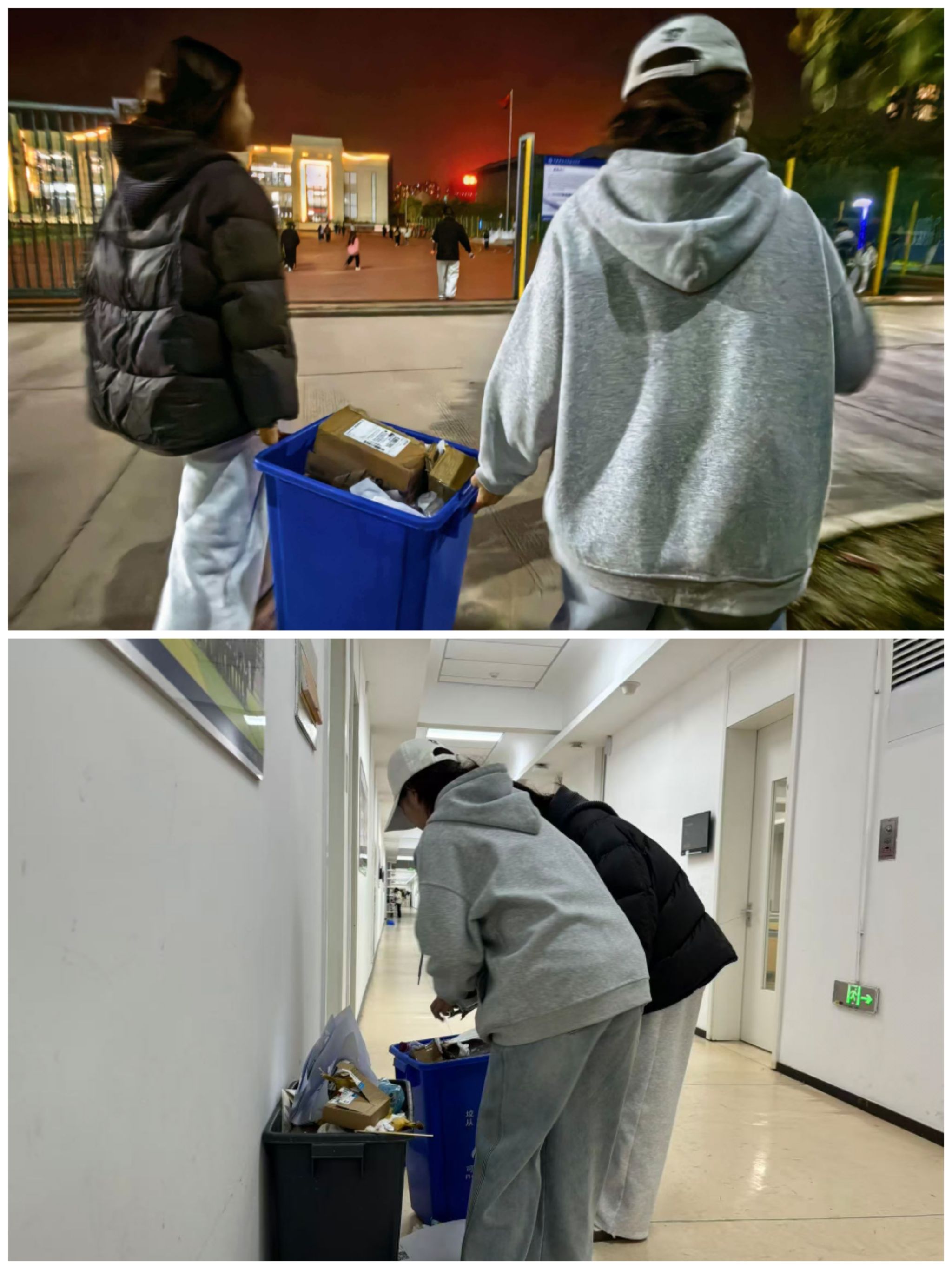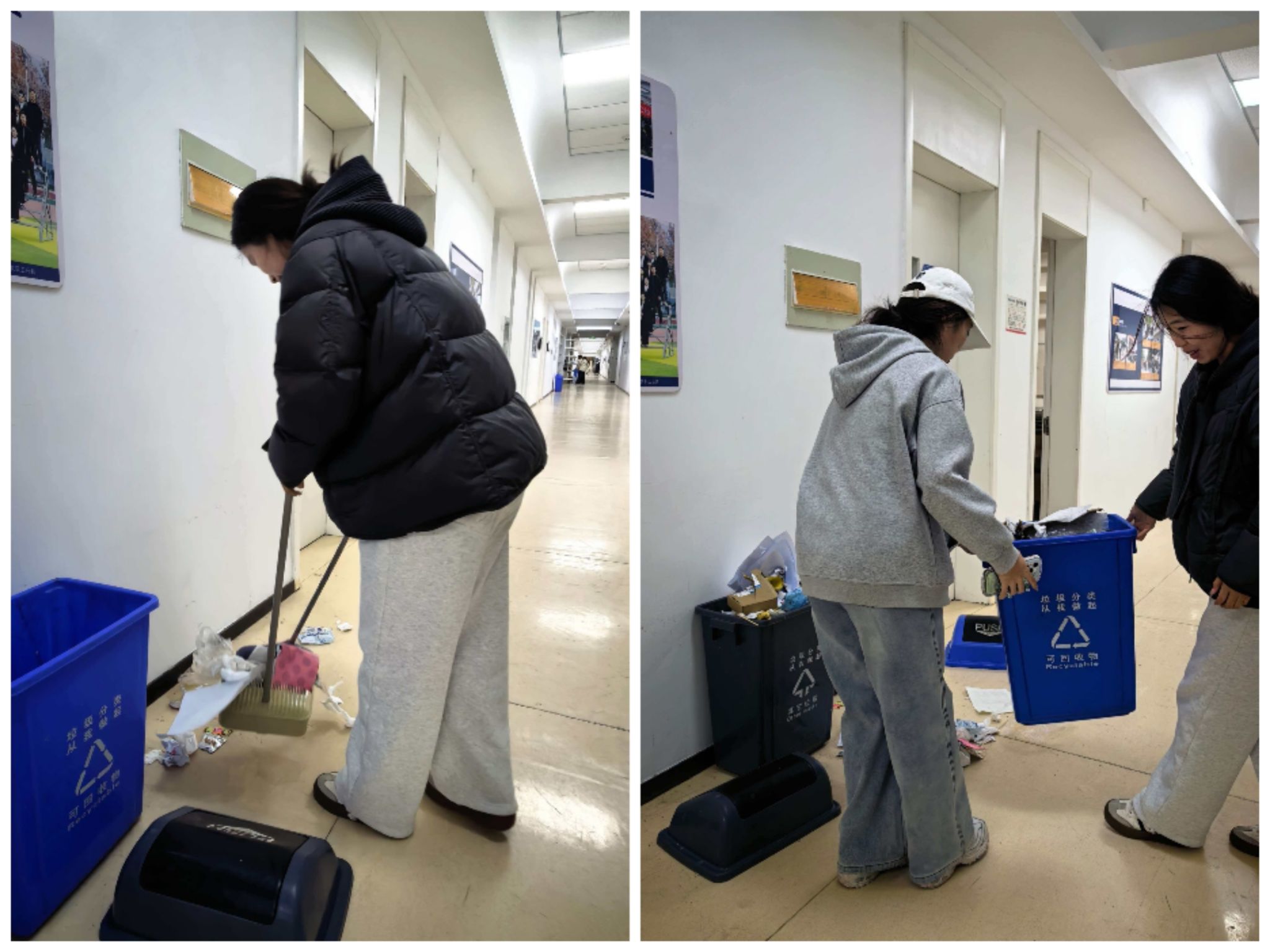 此次活动以“优化环境、减轻负担、提升效能”为目标,针对保洁人员在日常工作中面临的“垃圾桶逐个搬运、频繁往返楼层与中转站”等难题,精心组织志愿者开展集中攻坚。同学们深入各教室、走廊及角落,捡拾遗漏垃圾,实现“横向到边、纵向到底”的全覆盖,彻底消除卫生死角。