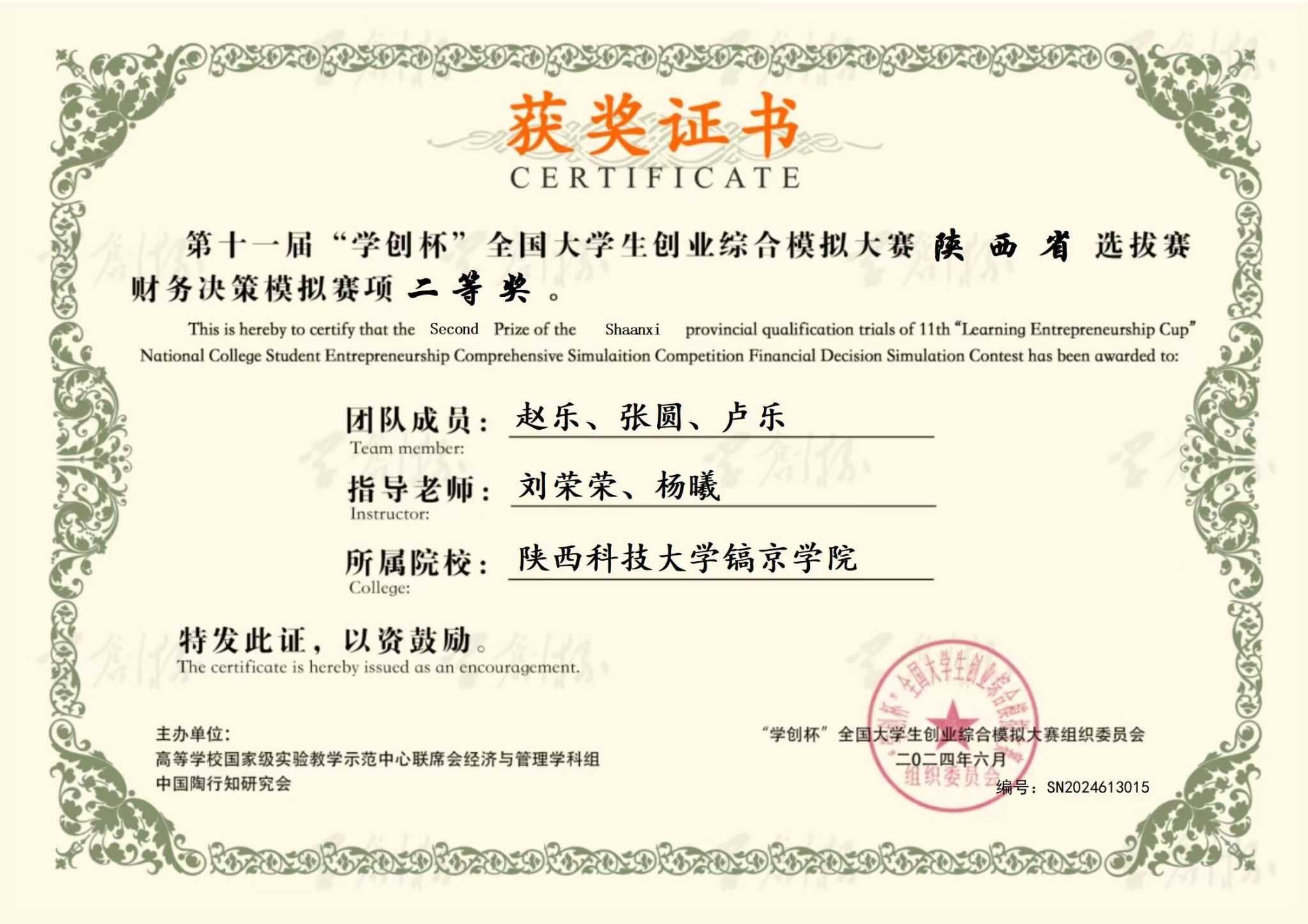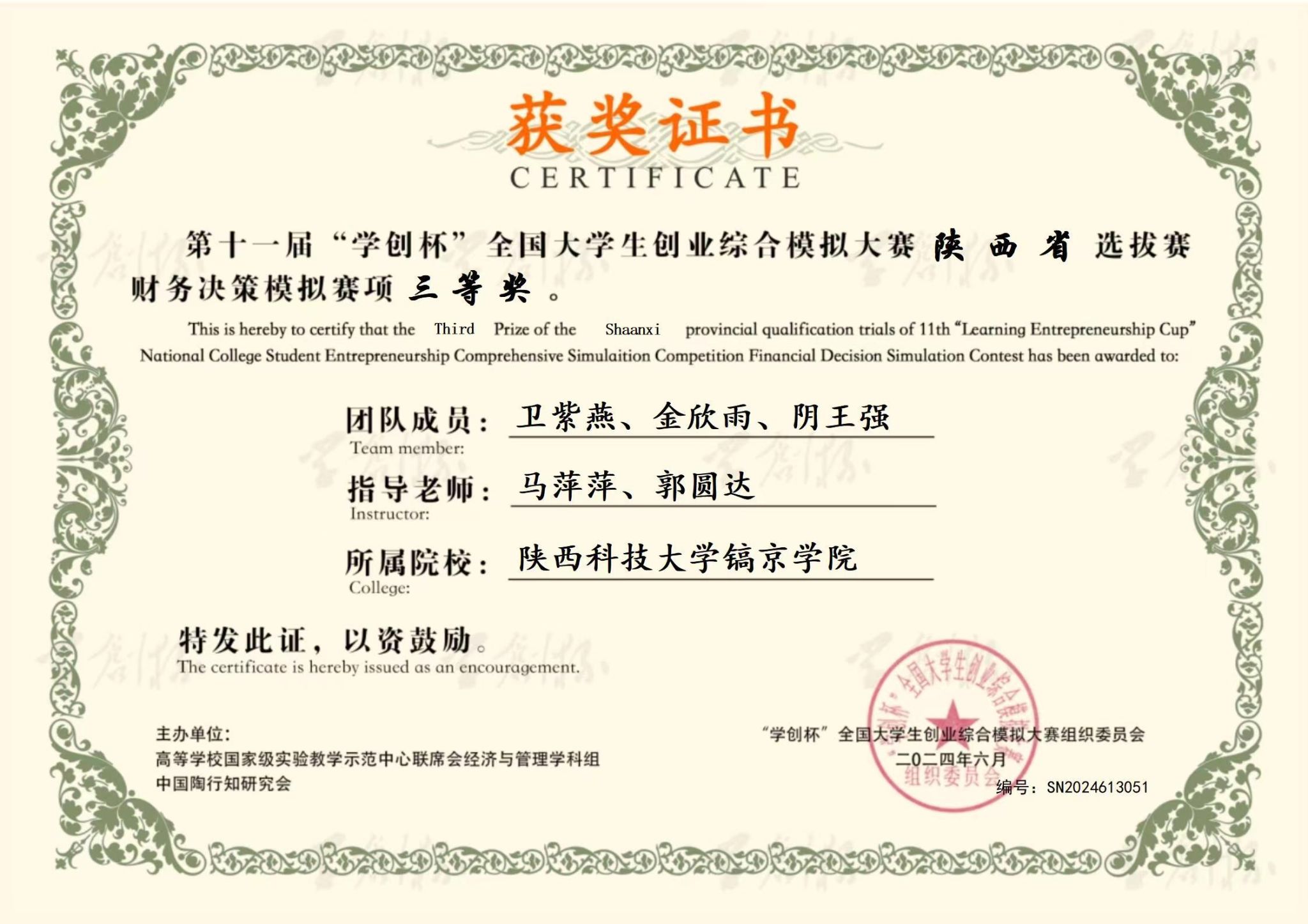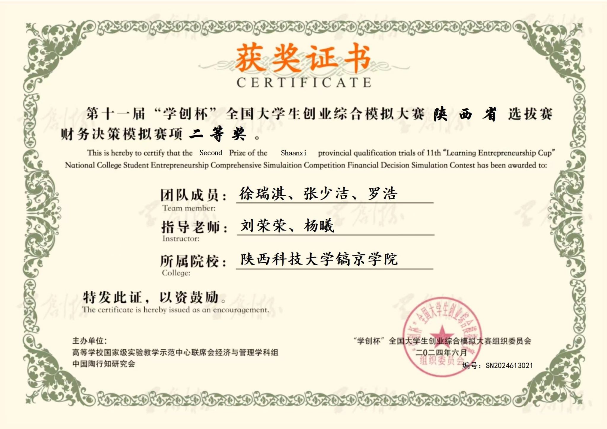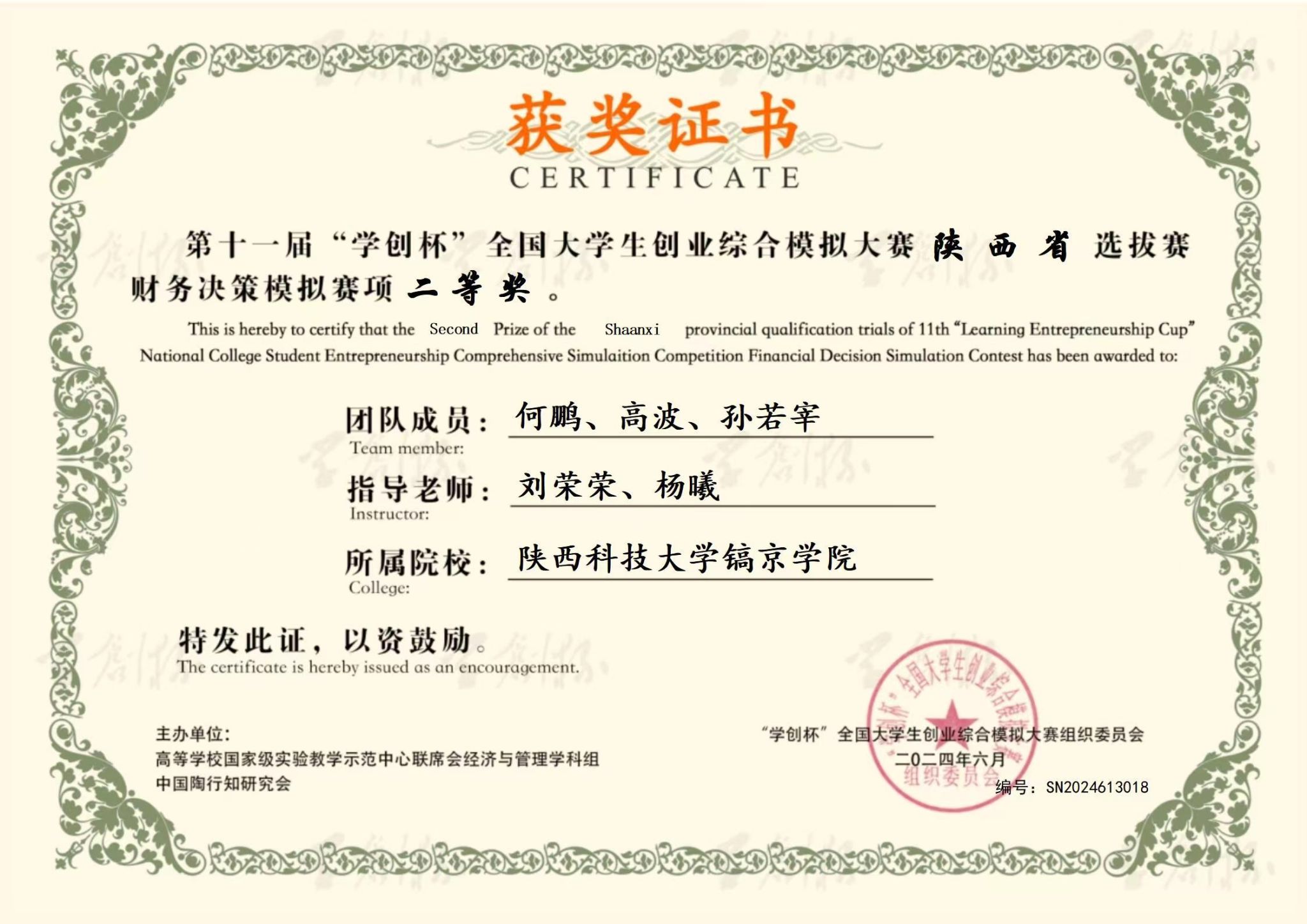 2024年6月22日,由高等公司国家级实验教学示范中心联席会经济与管理学科组,中国陶行知研究会主办,welcometo欢迎光临必发集团|官方网站承办的第十一届“学创杯”全国老员工创业综合模拟大赛陕西省选拔赛财务决策赛道落下了帷幕。公司15名参赛队员们不惧困难不退缩,在指导老师的帮助下,逐一攻克难题,共取得四个省级二等奖,一个省级三等奖的优异成绩。
