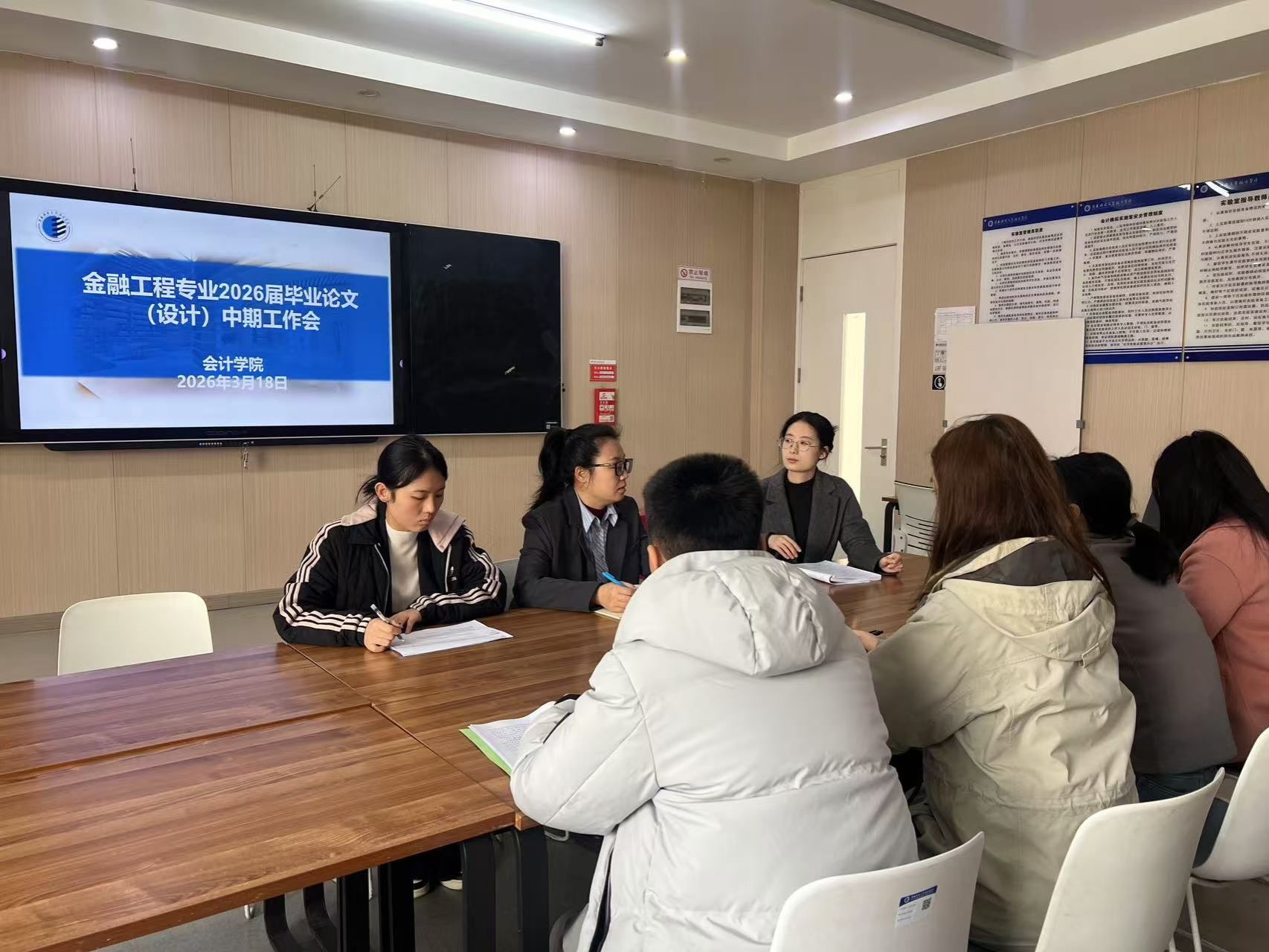 3月18日中午,金融工程教研室在实验楼312召开2026届本科毕业论文中期检查工作部署会。本次会议由财经审计教研室主任及茹主持,金融工程教研室全体教师参会。会议紧扣公司、公司关于本科毕业论文工作的各项要求,聚焦论文写作全流程监督与指导,旨在进一步规范毕业论文写作环节,及时排查写作过程中的各类问题,保障本届毕业生毕业论文工作高质量、有序推进。会上,及茹主任强调了本科毕业论文在本科人才培养体系中的核心地位与重要意义。...