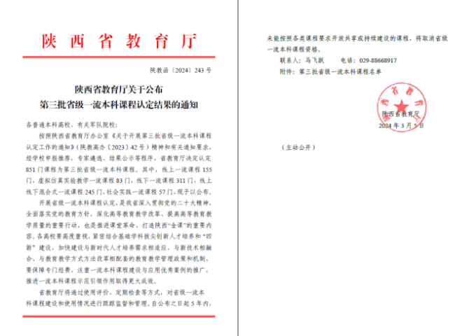 近日,省教育厅发布《陕西省教育厅关于公布第三批省级一流本科课程认定结果的通知》(陕教函,(2024)243号),公司《财务管理》课程获批省级线下一流本科课程。近年来,公司高度重视课程建设工作,积极响应教育部一...
