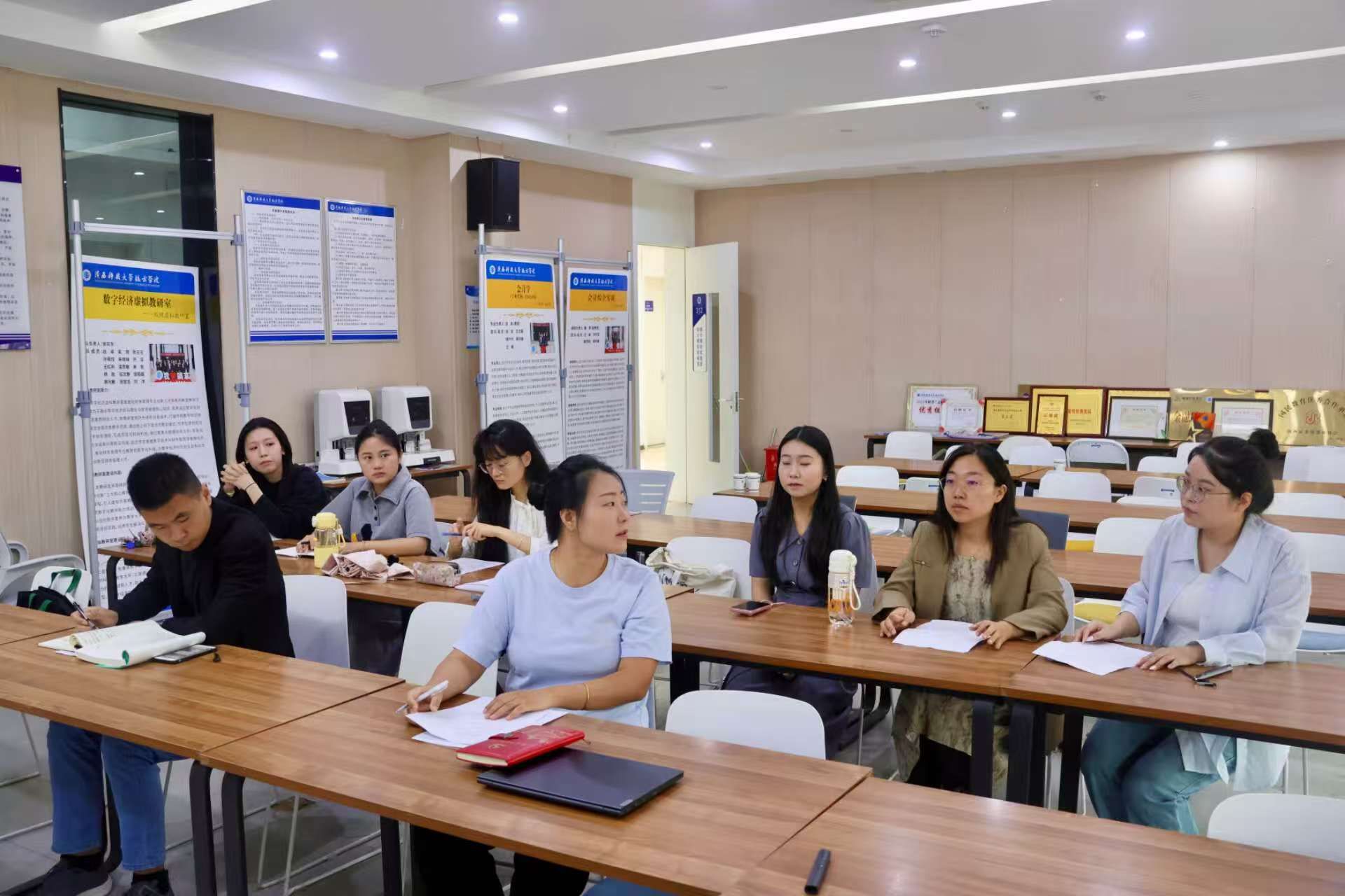 为进一步深化课堂教学改革,提升教研室整体教学水平与专业素养,促进教师的交流与智慧碰撞。近日,金融工程教研室开展了一系列磨课交流活动。活动以小组协作形式推进,将部门老师分为两个小组分别展开,帮助教师队伍提高教学能力。第一组磨课试讲由侯茜云老师带领磨课小组在实验楼311开展,专任教师郭秦、李雨春、王筱璐等七位教师进行了精心的教学展示与分享。他们围绕金融工程学科前沿与课程特点,深入分析学情,对教学环节进行了巧妙设计和重构,...