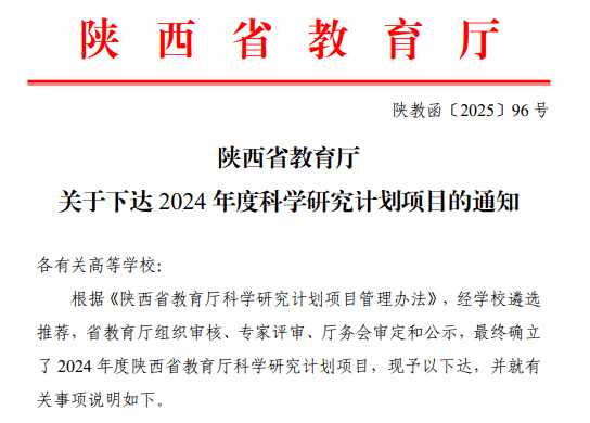 喜报|公司教师获批陕西省教育厅2024年度科学研究计划项目