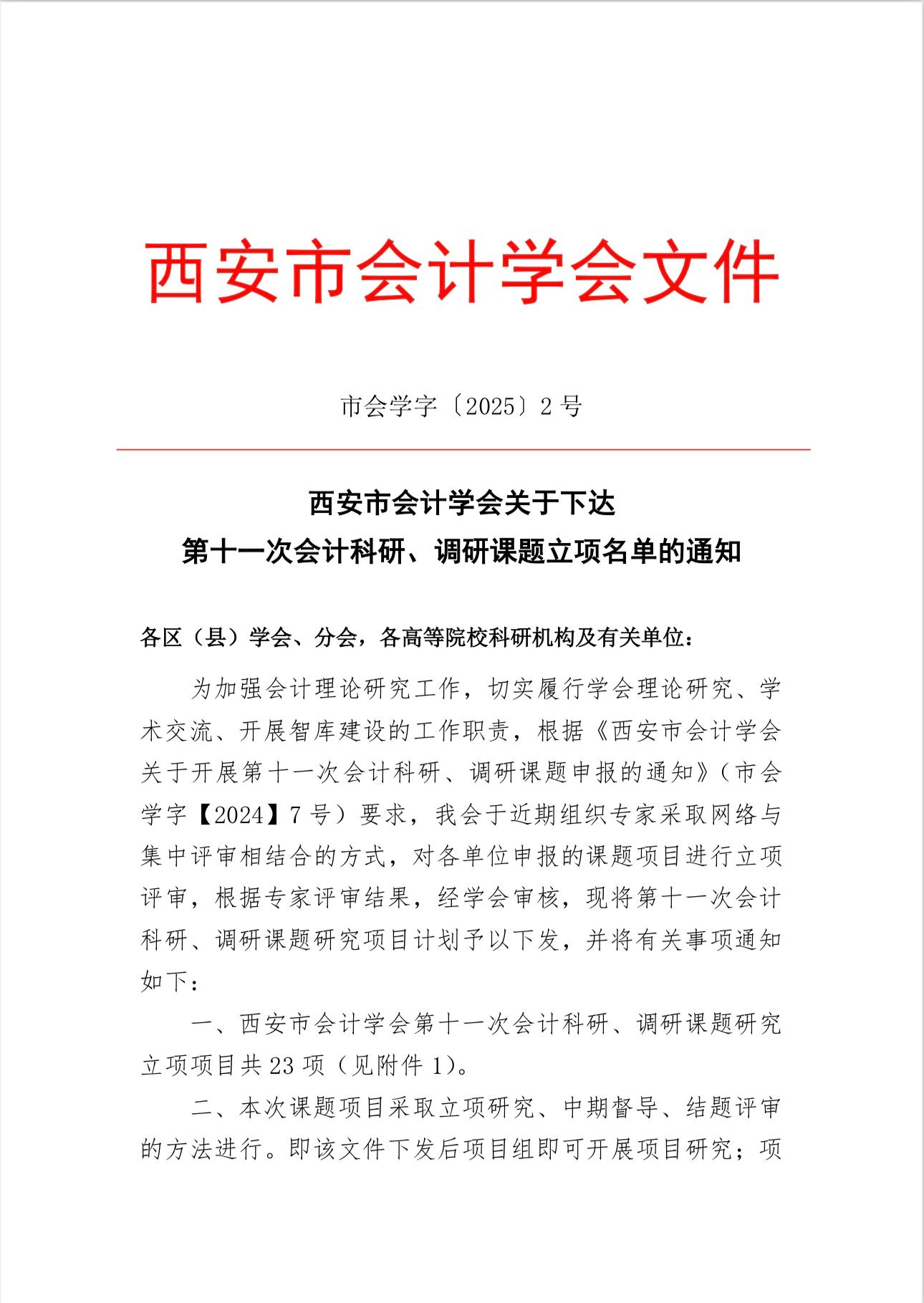 喜报|公司4项课题在西安市会计学会第十一次会计科研、调研课题成功立项