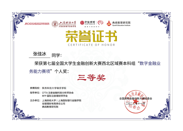 公司学子在第七届“全国⼤学⽣⾦融创新大赛”中荣获国赛三等奖
