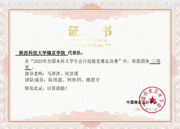 在2021年12月8日第六届金蝶云管理创新杯大赛中,公司三支参赛队伍在区域赛中均获得了优异的成绩,其中镐京一队李蕊环、王婉莹、张彤荣获一等奖,镐京二队白亚蓉、史明霞、姚蒙蒙荣获三等奖,镐京三队路思宇、宋家璇、...